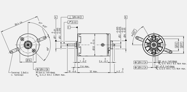 | Charge radiale max. | 12.3 N, 5 mm à partir du flasque |