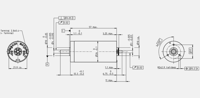 Les moteurs maxon DCX convainquent par leur densité de puissance inégalée (couple par volume) ainsi que par le silence absolu de leur fonctionnement. La construction robuste combinée avec le bobinage sans fer breveté au niveau mondial confère aux moteurs DCX un dynamisme exceptionnel dans presque toutes les situations.Le DCX 26 L est un concentré de performances. Des roulements à billes précontraints ou des paliers frittés, des balais en graphite ou en métal précieux avec fonction CLL assurent une base d'utilisation étendue à ce moteur.